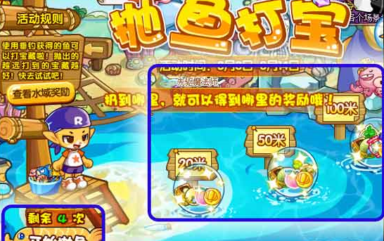 3.选择完毕后,直接点击”开始抛鱼“,然后就坐等奖励啦!每个不同距离的奖励是不一样的哦!