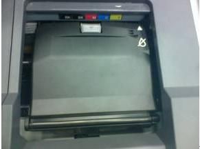 1、打开墨盒舱盖,取出达到使用寿命的墨盒,如图(4);