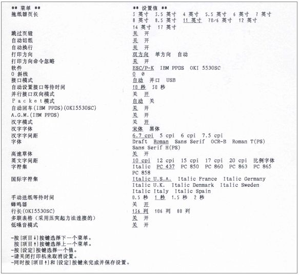 7.选项值的保存:设置完成后,按下“换行/换页(项目 )”按键和“切纸/存折(设定)”按键,打印机长鸣一声,打印机退出默认设置模式。您所进行的设置将作为新的默认设置保存。如果此时不想保存前面的更改,可以直接关闭打印机的电源。