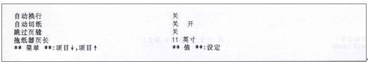 4.2.不需要打印打印机的当前缺省设定值:按下“换行/换页(项目 )”按键或按一下“进纸/退纸(项目 )”按键,则不打印出全部当前设置,直接可以进入设置状态。