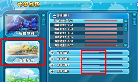 1、选择“休闲社区”--“浪漫海滩”,点击一个房间进入。