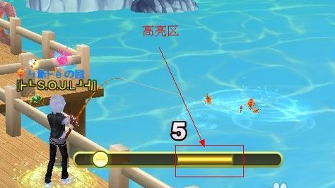 3、等一会,会出现滚动条,等滚动的滚动条移动到了光亮处在按空格键,鱼就钓上来了。