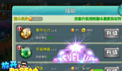 不过,升级技能需要消耗相应材料,技能等级越高,消耗的材料也越多,升级不同的技能将消耗金币、钢铁、化工药剂、煤矿四种资源中的其中一种,同时升级任何技能都将消耗副本星数。副本星数将由领袖通关副本获得,最多一个关卡3星通关,也就是玩家最多可从一个副本中获得3个副本星数。