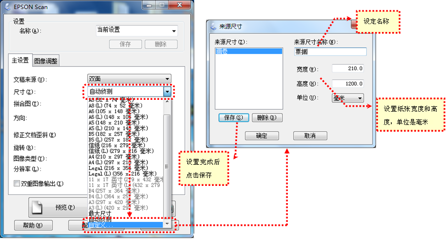 使用ADF扫描时默认“文档大小”为“自动检测”,当文稿长度超过356毫米时,扫描仪将不能自动检测长度导致发生错误。