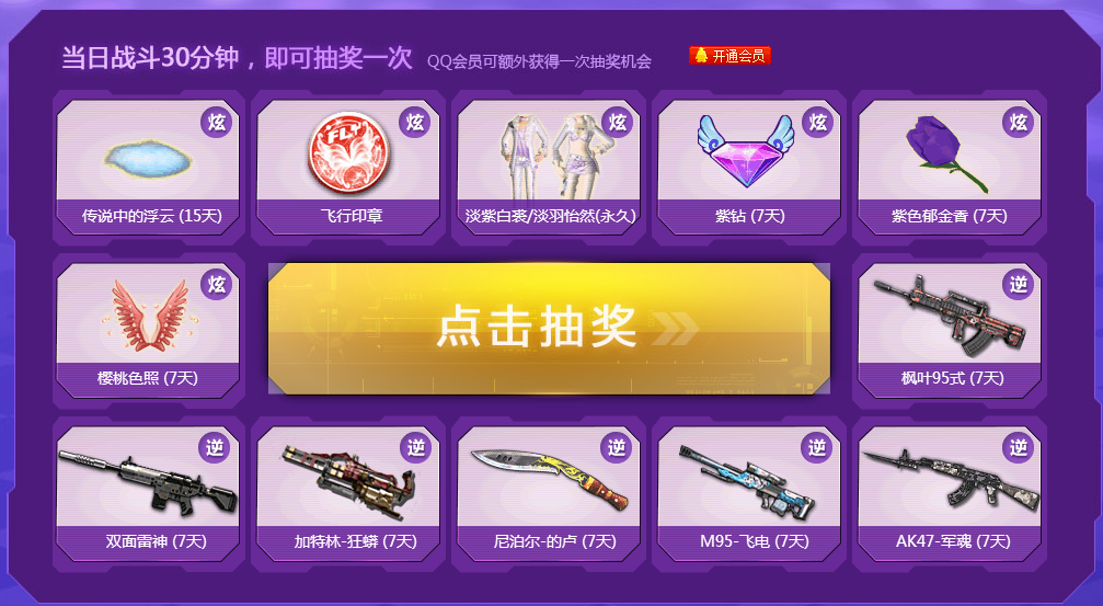 4、所有玩家当日游戏时长超过30分钟可以抽奖一次。