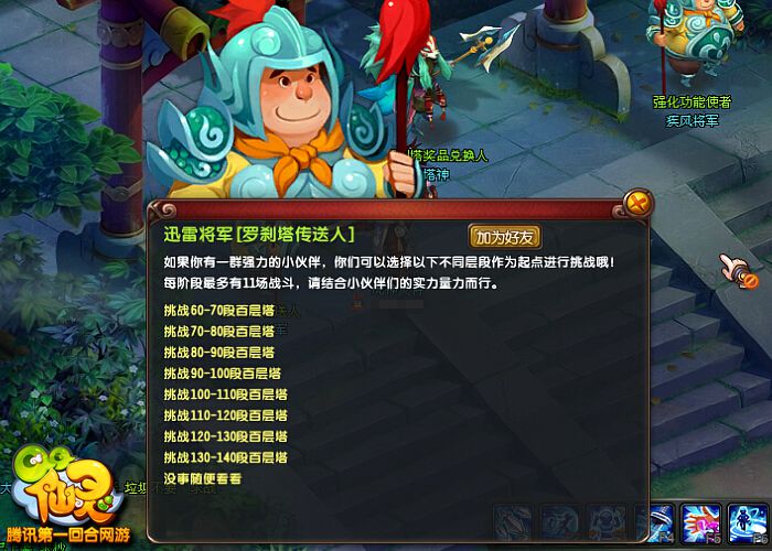 qq仙灵罗刹塔新增加了多人模式玩法,刹塔共有140层,尽显每周2、4、6、7开放,多人模式须50级以上才能挑战,入口在NPC迅雷将军(中原南67,127)处,qq仙灵罗刹塔多人模式怎么玩呢?下面东坡小编给大家详细介绍吧。