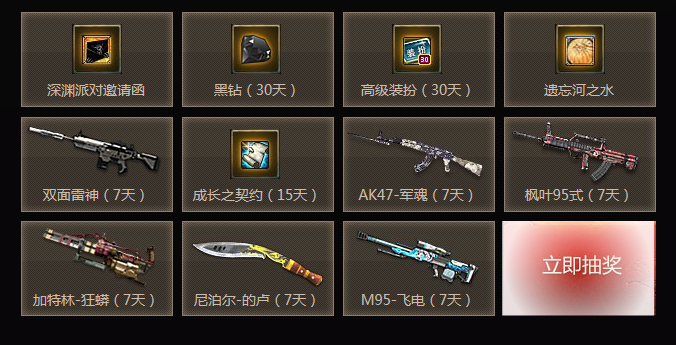 2、新兵每日战斗30分钟,即可抽奖一次 。QQ会员可额外获得一次抽奖机会