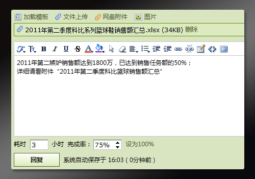 如在“科比系列篮球鞋销售任务”中,点击“回复”可直接回复销售进度。