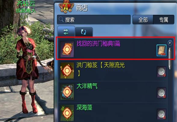 可以在江流市成就商人齐钰云处用100个寻回的秘籍获得洪门秘典。