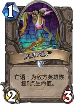 肉用僵尸:亡语:为敌方英雄恢复5点生命值,1费2/3