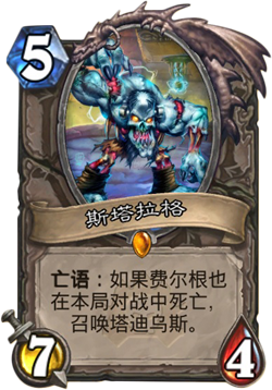 斯塔拉格:亡语:如果费尔根也在本局对战中死亡,召唤塔迪乌斯,5费7/4