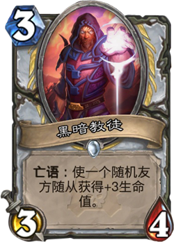 解锁奖励:黑暗教徒:亡语:使一个随机友方随从获得+3生命值,3费3/4