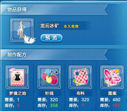 经常看物品制作的小伙伴都知道“龙云”的制作在裁缝的高级制作里,需要的材料如下