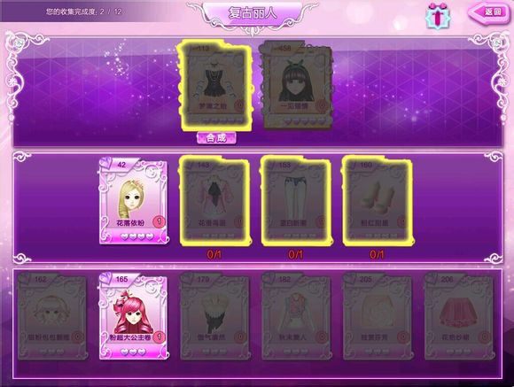 上图是“复古丽人”里所有的卡片,第二行三个黄色框框里的卡片,是合成“复古丽人”需要用到的卡,“鸟语花香”、“蓝白新潮”、“粉红甜心”,这三张都是四星卡,获得方式跟“梦境之始”差不多,要么抽卡要么合成。比较让人松口气的是,这三张四星卡抽到的概率还是较大的,因为同时做“龙云”的四个号里,有三个号都抽到其中的一张或者两张。