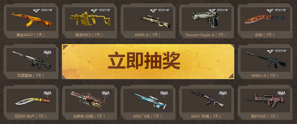 据悉,近日cf联合逆战为游戏玩家们带来了一个福利活动,即——只要玩家在8月11日后活动期间之内注册逆战账号即可免费领取黄金枪5选1,另外,玩家还可以参与抽奖赢黄金ak47+赤焰等热门武器哦,一起来看看吧!