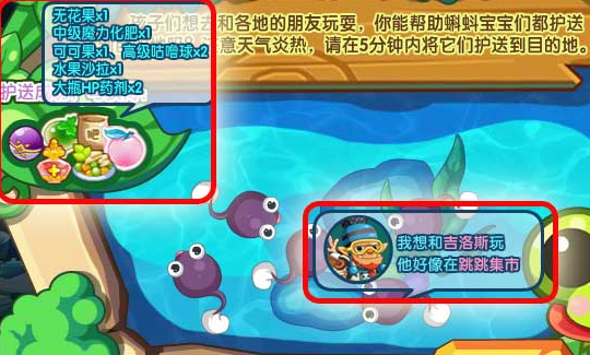 3、在5分钟内,到达目的地和NPC展开对话,选择“蝌蚪宝宝找你玩耍”!