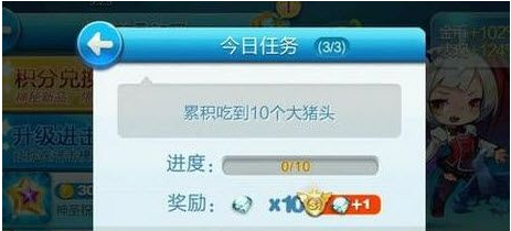 天天酷跑今天更新之后大家就会发现有很多的地方都发生了变化,比如说大家都是非常的关注的一个是任务怎么过,或者是每天都是什么样子的任务,那么现在小编告诉你,现在有一些任务都是非常的难过的,如下面的这个天天酷跑累计吃到10个大猪头任务,看到这个你是不是完全不知道怎么办?