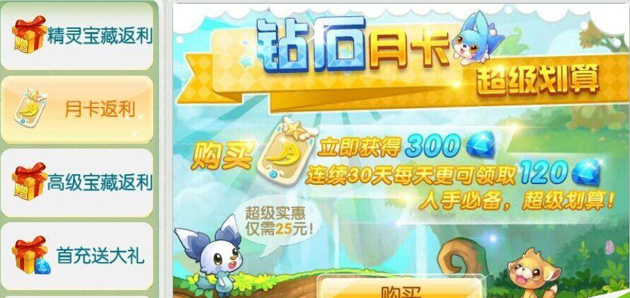 全民精灵月卡是在1.8.0版本才会推出的物品哦,等到游戏更新后花费25元即可购买