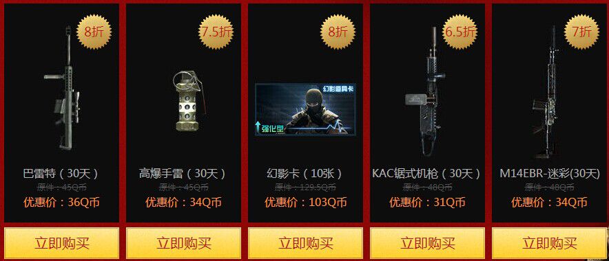 折扣券可在CF买一送三活动网站上按折扣价购买CF道具,如巴雷特、高爆、幻影卡等等。