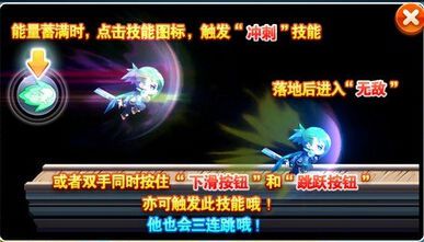 技能:冲刺2.5秒,冲刺后无敌2.5秒,四连跳