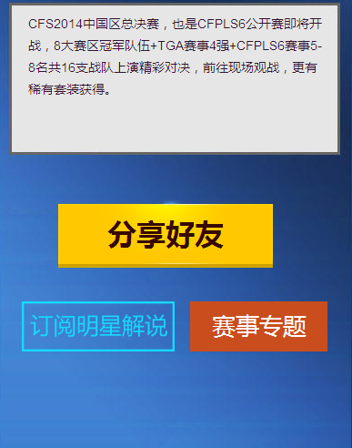 cfpl s6总决赛分享好友抽奖活动地址 http://youxi.vip.qq.com/game/act/201408/cfs.html