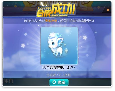 如果合成失败,系统也会返还给你一定的奖励,必得一个【许愿券】供你参加许愿馆小游戏以及一只宠物,助你再接再厉,继续合成!