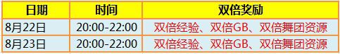 8月22日-8月23日,20:00-22:00,公测双倍收益大狂欢,3重双倍惊爆来袭!