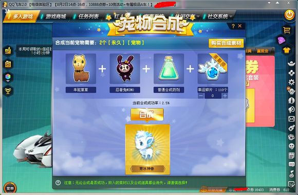 好了,关于qq飞车寒冰神兽合成方法小编就为大家介绍到这里啦!感兴趣的小伙伴赶紧试试吧!