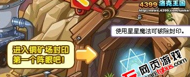 第一个阵眼在铜矿场里。小洛克可以先使用星星魔法破解门口的封印,进入铜矿场。