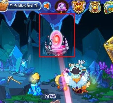 第三个阵眼在水晶矿场。进入需要玩一个小游戏,如果曾经进入过的小洛克,可以直接使用小地图跳转进入哦!