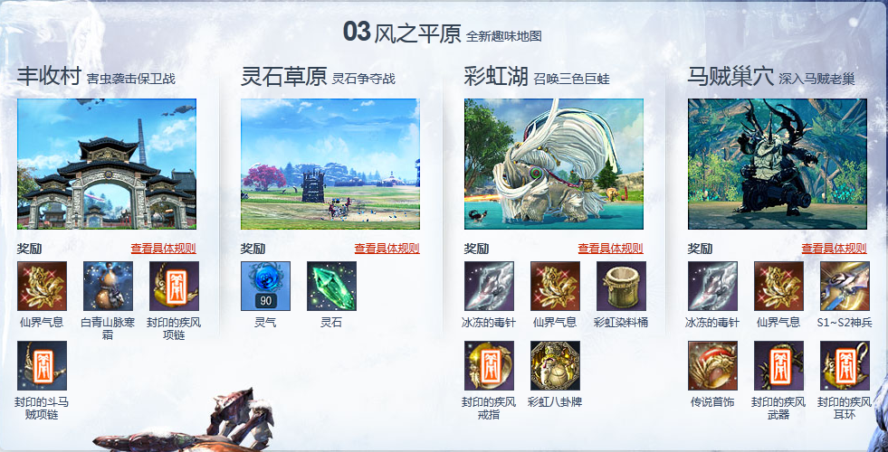 3、 喜欢野外战斗、趣味玩法的玩家,则可以在风之平原地图停留较长时间,这里有四种不同的玩法供你体验: