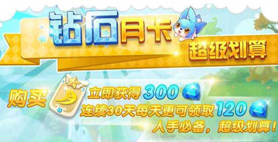 购买月卡后,可以立即获得300钻石,而且连续30天更能每天领取120钻石,人手必备!