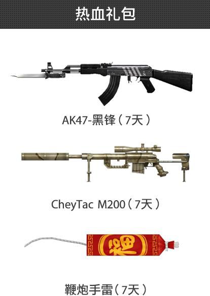 2、热血/礼包奖励有ak47黑锋、鞭炮手雷等武器