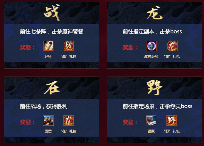 ※ 开启各礼包有一定概率获得:龙珠、“战龙在野”称号(7天)、飞龙坐骑(7天)