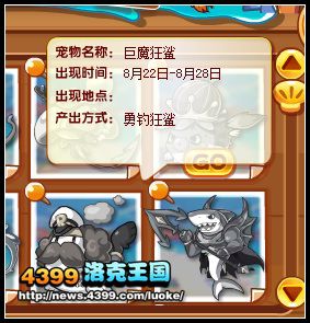 钓鱼系列中最帅气的宠物就属巨魔狂鲨了~而且这只宠物还是限时宠物,想获得的小洛克要记住时间哦!
