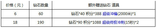 1、活动期间,小伙伴们只要充值达到以下对应额度,即可额外获得相应额度的钻石 道具,每天只能获得一个额外赠送的礼包哦!