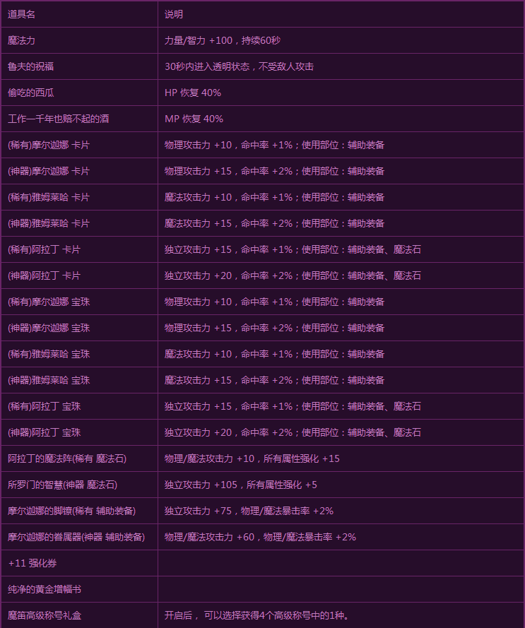 迷宫攻略集道具列表:打开后可以随机获得列表中两种道具。