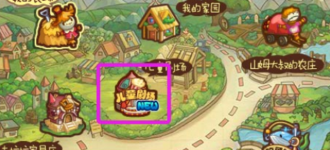 开世界地图,找到活动街,可以看到,儿童剧场就在里面哦!