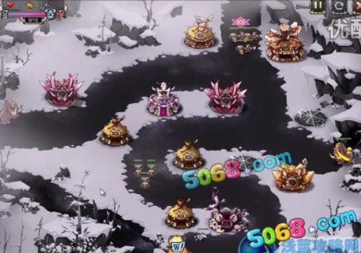这一关的主要两个入口都给封印了很蛋疼再就是这一关有大量的精英关所以我们要根据精英关的类型在对应的道路上防止防御塔,开始的时候小编推荐大家放置二级炮灵和勇灵。下面一张图是小编游戏最后布置完成的截图大家可以参考下小编的布置方法。