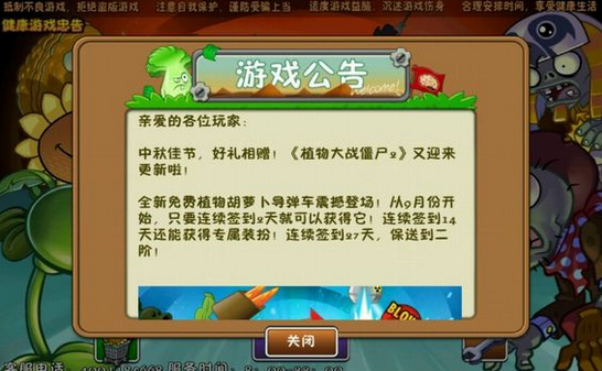中秋佳节,好礼相赠!《植物大战僵尸2》又迎来更新啦!全新免费植物胡萝卜导弹震撼登场,只要连续签到2天就可以得到,还有中秋好礼活动,下面东坡小编就给大家详细介绍植物大战僵尸2更新内容。