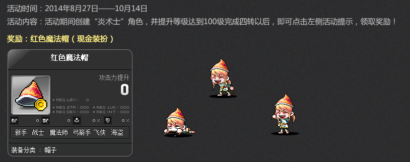 首页 → 最新资讯 → 游戏要闻 → 冒险岛炎术士觉醒 炎术士觉醒奖励红色魔法帽