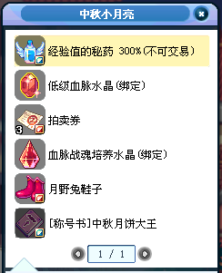 同时,任务NPC还提供道具兑换,使用中秋小月亮可兑换以下道具