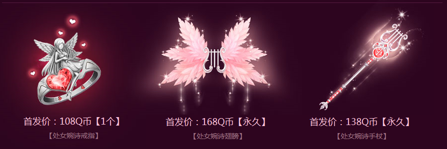 注:礼包内含【处女婉诗套装】、【处女婉诗翅膀】、【处女婉诗手杖】各30天,【处女婉诗戒指】1个;打开后还100%获得1个额外奖励,包括:永久【S车速度之魔】、【双人翎蓝奢疑飞椅】、【荣耀之心手杖】或其他奖励之一!