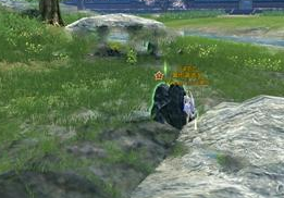 来到丰年村后,我们需要从丰年村西边的出口出去,然后一直向西,知道看见一块大石头。我们需要的材料就在石头后面,素材采集地点如下: