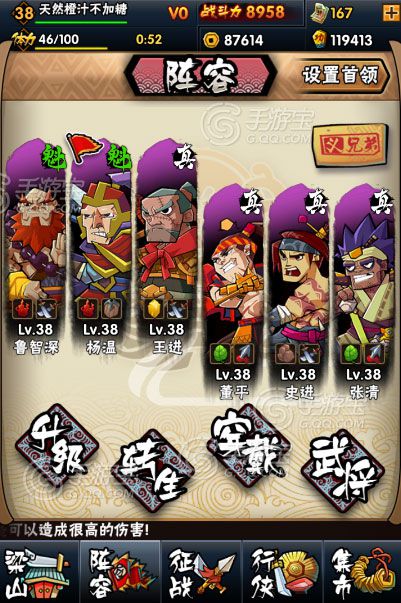 阮小五,初始属性攻击一般,但是血量和闪避都不错,可以作为前排的副T,技能是晕杀,效果很不错,是晕杀阵的核心武将。
