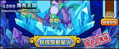 3、每天只能获得4个燎原星火,积满60个就可以直接获得暗黑大力神了哦!