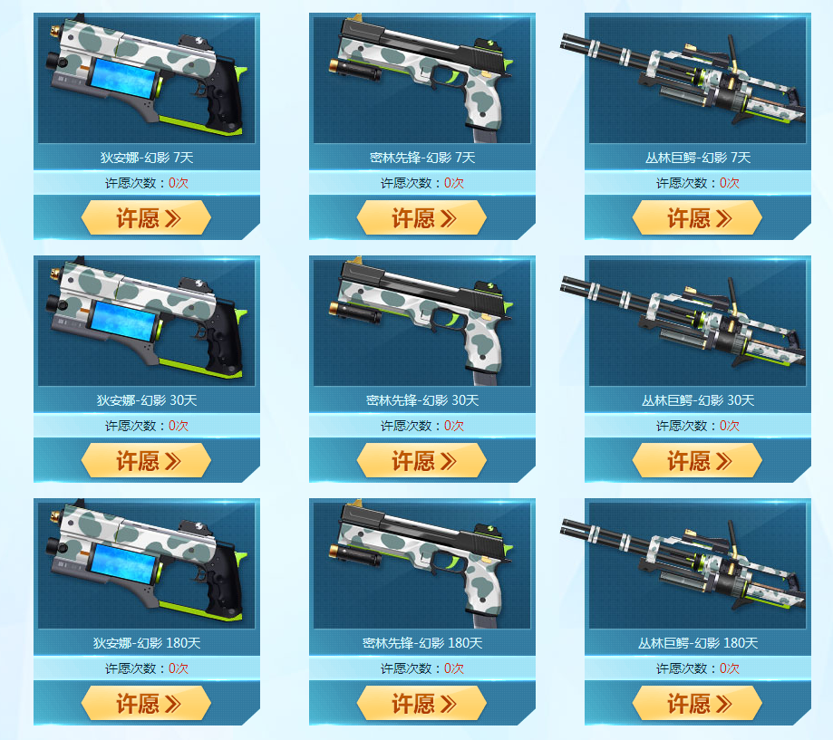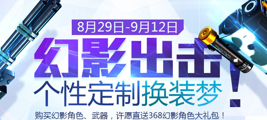 在游戏商城中购买了幻影系列任意武器的玩家,可根据自己的消费记录许愿,获得当前武器期限加倍 or 368Q币礼包大奖!