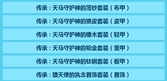 dnf天马守护神套装怎么得?dnf狮子座慷慨礼盒在8月28-9月25日加入了80级传承防具和首饰了,包含天马守护神的薄纱套装、天马守护神的狼皮套装、天马守护神的橡木套装、天马守护神的铂金套装 、天马守护神的钛钢套装、堕天使的执念首饰套装、堕天使的执念首饰套装。