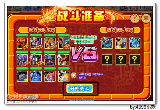 选择好6只要出战的妖怪点击“开始战斗”就可以了哦!4场多妖战都是6VS6的随机妖怪对决,只要选对了属性相克,几乎大招秒杀即可。