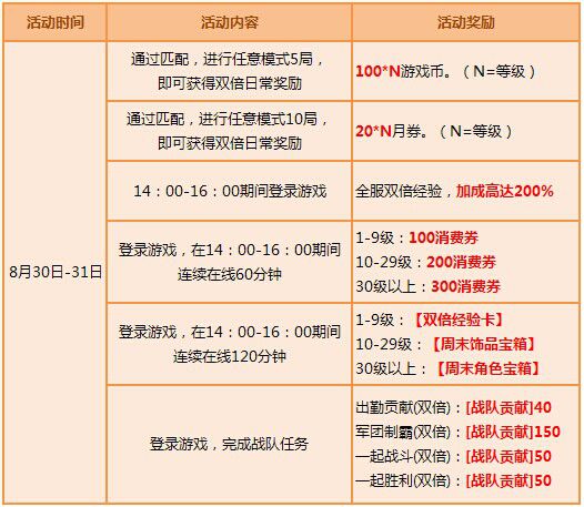 还在惆怅没钱买武器吗?还在为战队等级低而忧虑吗?周末双倍福利大放送!再也不用担心口袋空空啦!现在就来为你的战队出份力吧!
